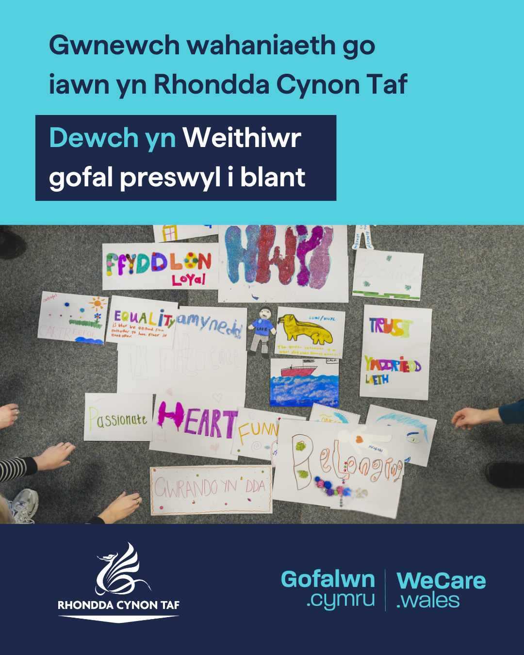 Ar gyfer rhannu ar wefannau, cylchlythyrau ac e-byst.